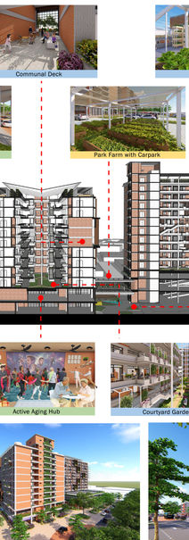 COMMENTS: The inter-generational garden in front of the private drop-off area needs to be amended to avoid people from crossing the road. Study on the safety of the corridor for social activities. Need further study on sustainable design, which is RWHT, urban farming, and solar panel. Provide a plan of how this works. Need to show the details of RWHT strategies. Provide a diagram on the scenario of how flexible housing strategies work.